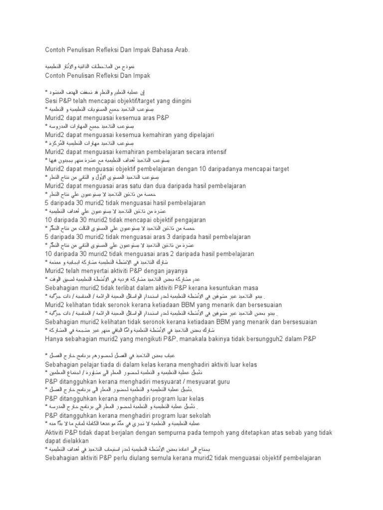 Mereka setiap kali selepas habis sesi pdpr contoh rph bahasa arab. Contoh penulisan refleksi dan impak bahasa arab.